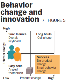 In the development stage, the task is to make the offering user friendly. Work by Daniel Kahneman for his 2002 Nobel Prize in economics shows there must be a tenfold increase in perceived value for the new idea to be accepted. We measure ease of use versus radical nature and involve operations and sales for this. A great tool emerging for use at this stage is 3-D printing.8 It enables us to prototype new product ideas quickly and cheaply, and test them on potential users (Figure 5).